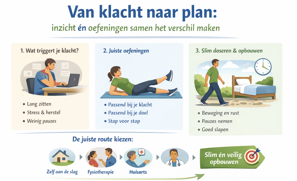Van klacht naar plan: waarom inzicht én oefeningen samen het verschil maken