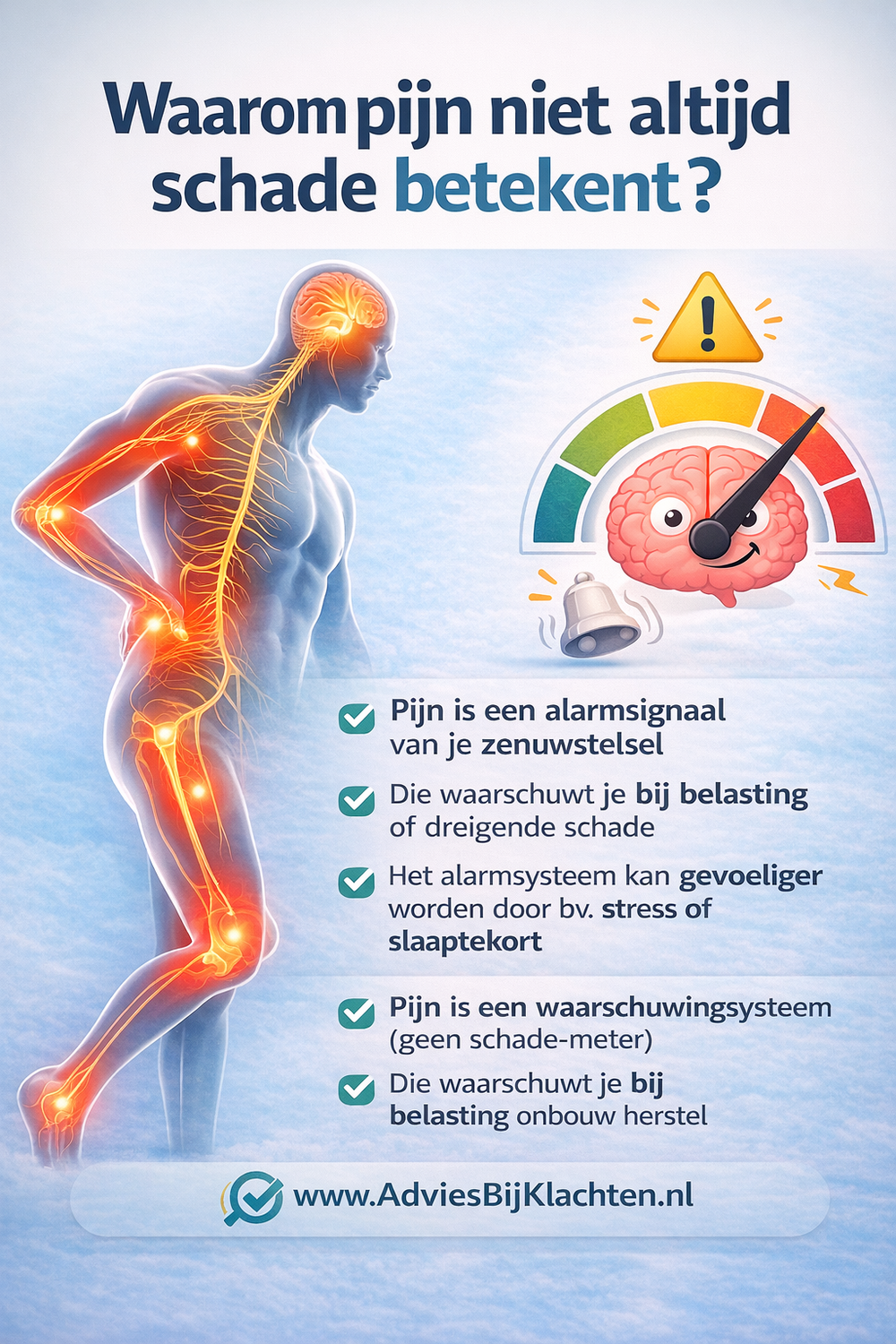 Pijn is een waarschuwingssysteem (geen schade-meter)