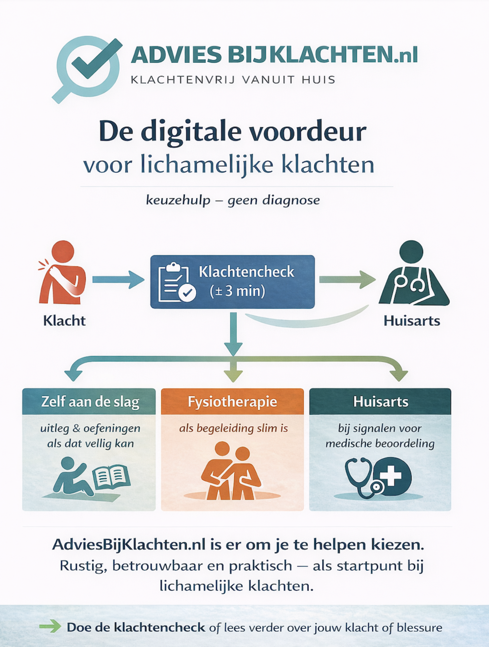 Kortom: AdviesBijKlachten.nl is er om je te helpen kiezen. Rustig, betrouwbaar en praktisch — als startpunt bij lichamelijke klachten.